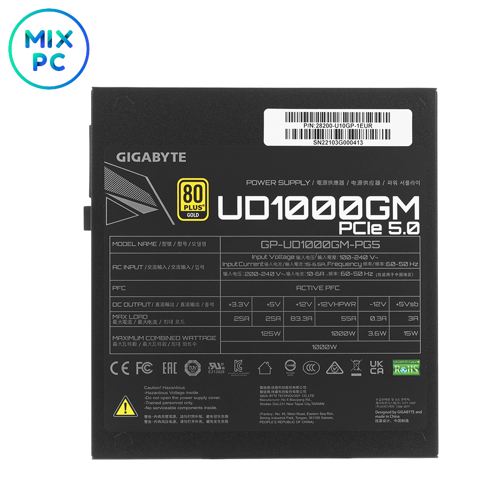 Мощность по линии +12V:1000 Вт