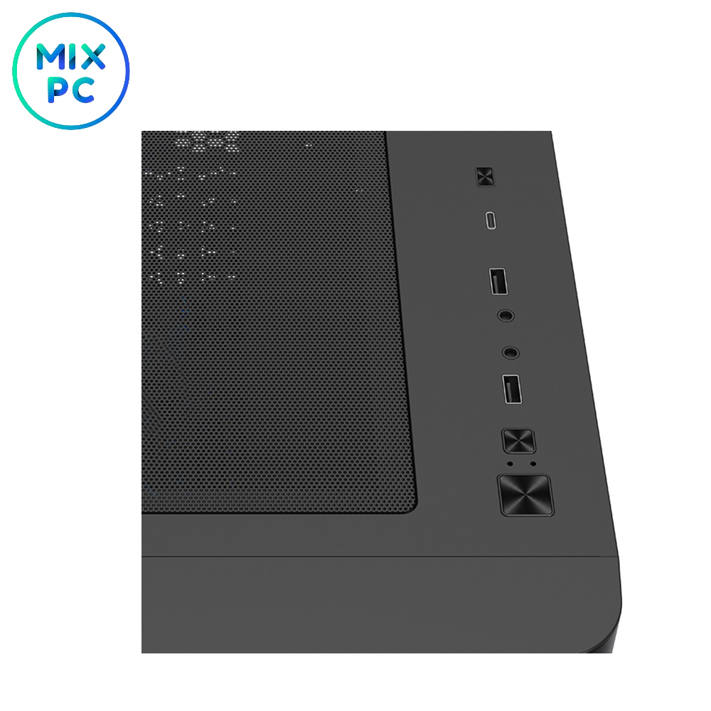 Разъемы на лицевой панели:2x USB 3.0, разъем для наушников, разъем для микрофона, кнопка Reset, кнопка Power, 1x USB 3.2 (Gen 2) Type C