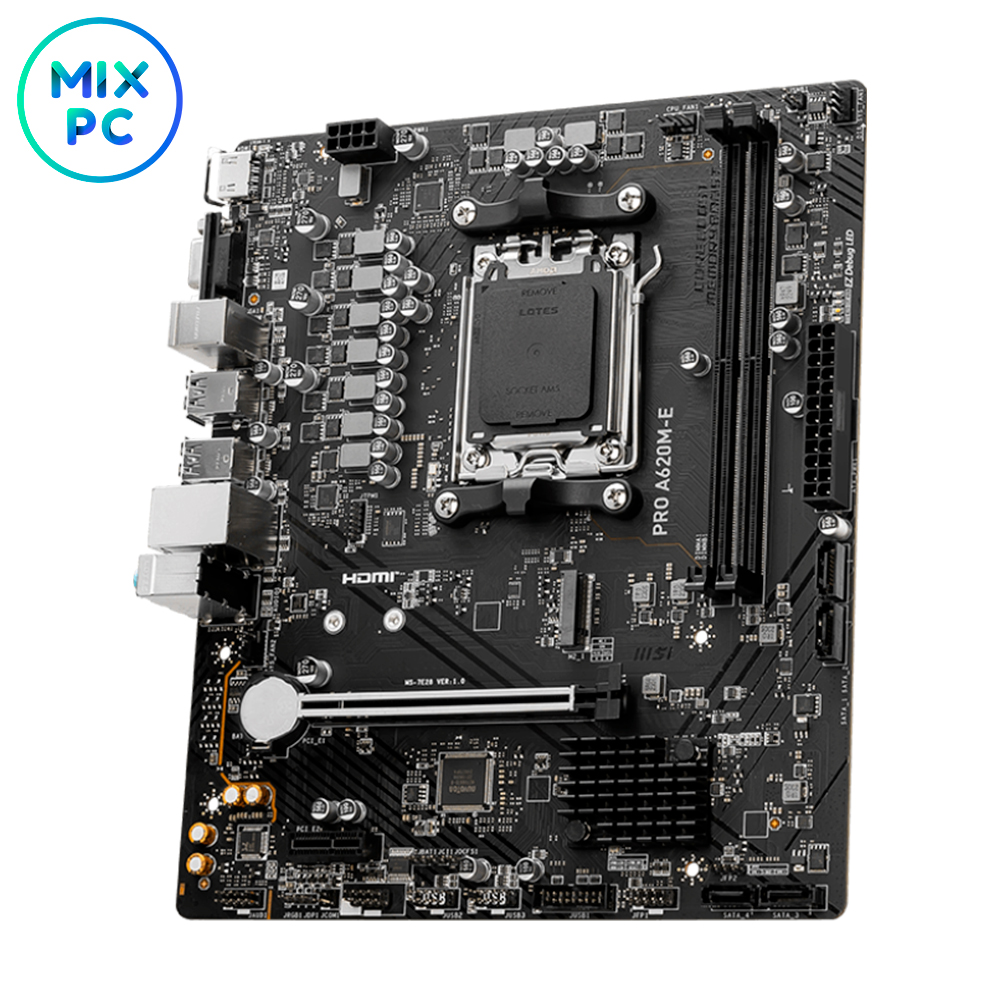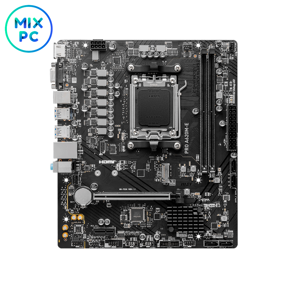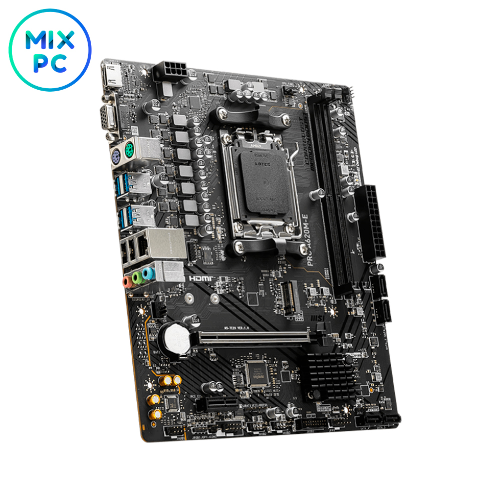 MSI PRO A620M-E также предлагает множество портов для подключения устройств. Она готова к длительным нагрузкам, что делает её надёжным решением для профессионалов и геймеров.